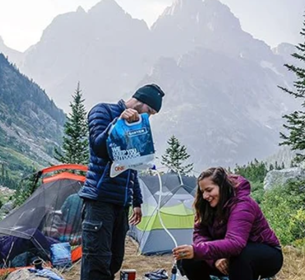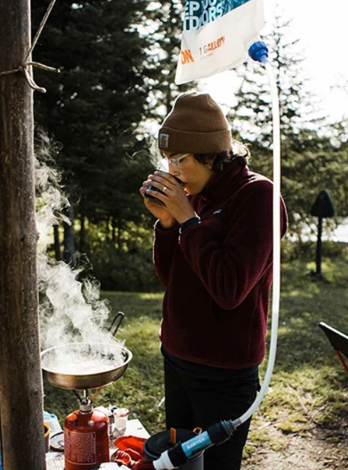 1.Remplir la poche d’1 gallon avec de l’eau de source, lac ou ruisseau.